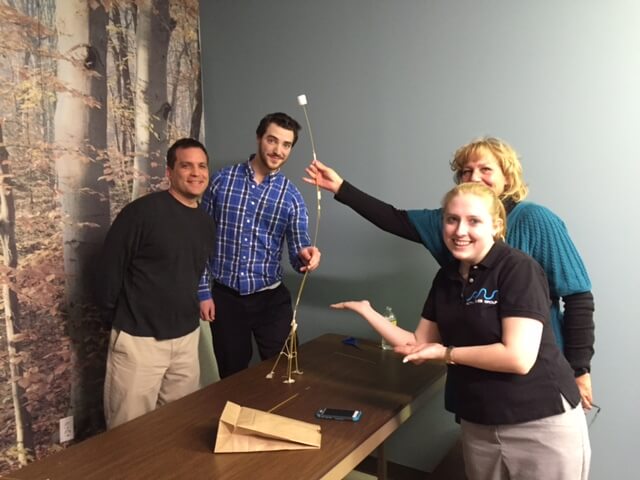 The third and final event was no challenge for the weak. For the final event – the deciding factor of who would be victorious, each team had to work together and build an architectural structure from 20 raw spaghetti strands, 8 inches of string, two feet of masking tape, a pair of scissors, and a marshmallow. Each team was allotted 18 minutes to construct a building with a marshmallow on top, the marshmallow that reached the highest peak, without any help staying up won! Team three & Occasionally Mike Perna or Sung came out with a spectacular victory, earning them 50 points. The final 50 points won Team Three & Occasionally Mike Perna or Sung the battle and the war, here are the final results: